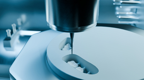 Prosthodontics — Print denture try-ins/bases; mill zirconia frameworks or full-contour.
