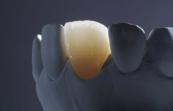 Стеклокерамические материалы превосходно подходят для использования в передних зонах рта, поскольку в этих случаях эстетика играет более важную роль, чем простая прочность материала. Его исключительно высокий уровень прозрачности (показатель TP составляет 15–25 при толщине 1 мм) позволяет ему в точности имитировать свойства натурального эмали (показатель TP около 16–19), что обеспечивает реалистичное ощущение глубины, опалового блеска и флуоресценции как в обычном свете, так и под ультрафиолетовым излучением. Благодаря этому реставрации идеально сочетаются с соседними зубами — не возникает никакого сероватого оттенка или неприродной непрозрачности, характерных для других высокопрочных материалов.