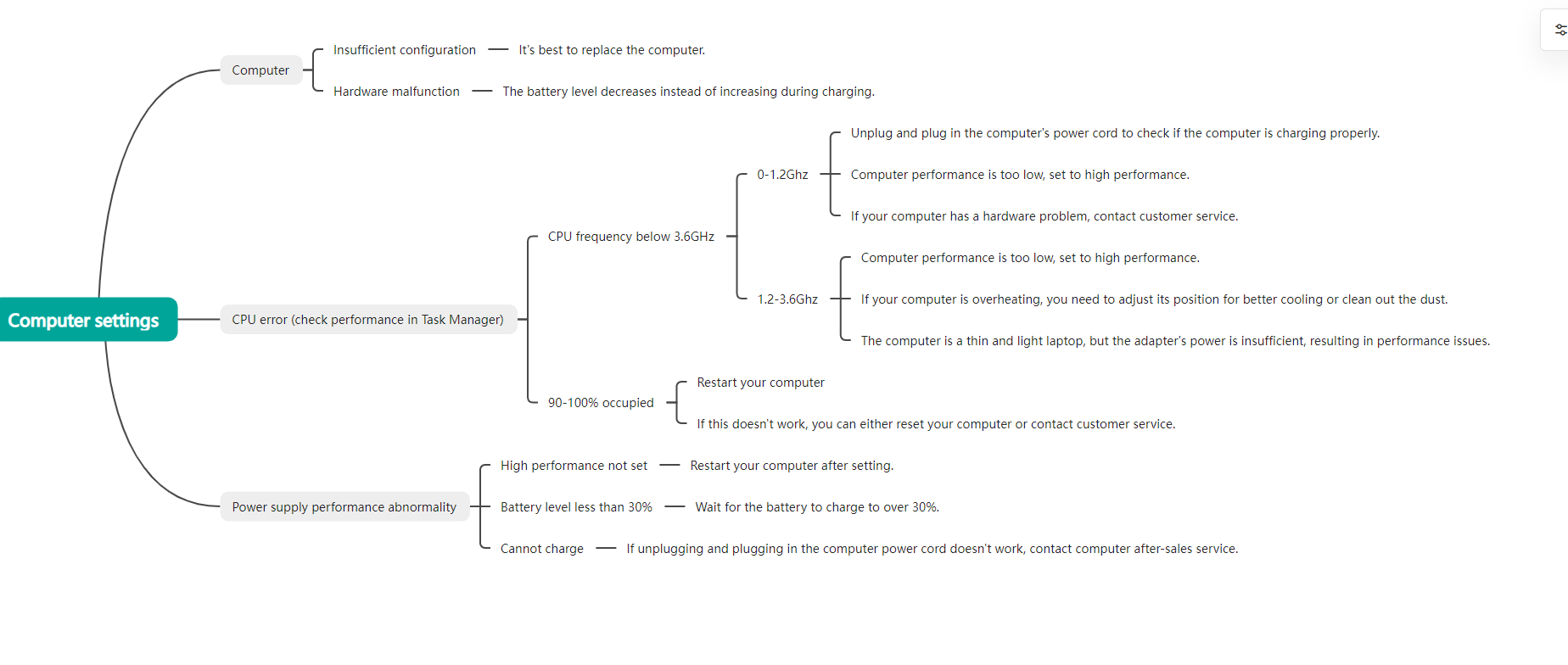 The following is the troubleshooting logic for computer settings.